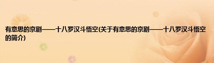 有意思的京剧——十八罗汉斗悟空(关于有意思的京剧——十八罗汉斗悟空的简介)