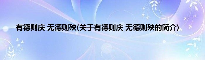 有德则庆无德则殃(关于有德则庆无德则殃的简介)