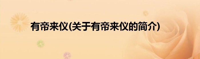 大家好,有帝来仪,关于有帝来仪的简介很多人还不知道,现在让我们一起来看看吧!