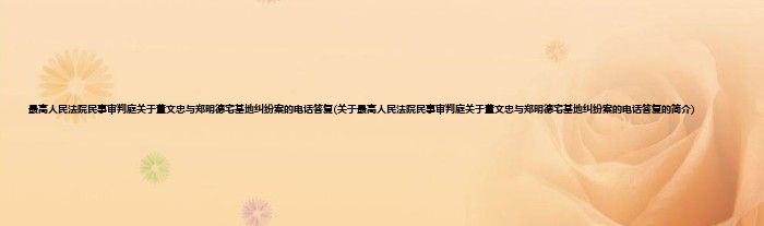 本文关于最高人民法院民事审判庭关于董文忠与郑明德宅基地纠纷案的电话答复的简介就讲解完毕,希望对大家有所帮助。