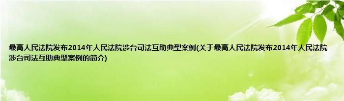 最高人民法院发布2014年人民法院涉台司法互助典型案例(关于最高人民法院发布2014年人民法院涉台司法互助典型案例的简介)