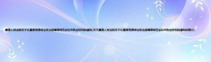 本文关于最高人民法院关于认真贯彻律师法依法保障律师在诉讼中执业权利的通知的简介就讲解完毕,希望对大家有所帮助。
