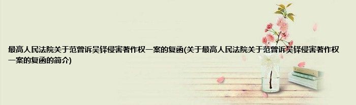 本文关于最高人民法院关于范曾诉吴铎侵害著作权一案的复函的简介就讲解完毕,希望对大家有所帮助。