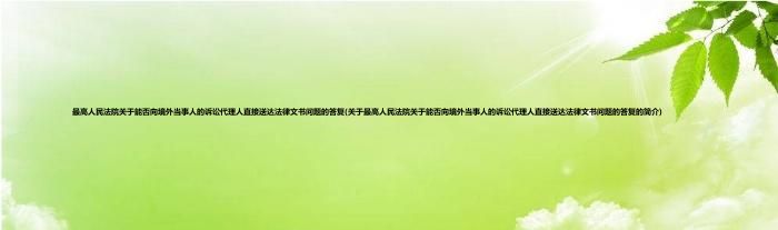 大家好,最高人民法院关于能否向境外当事人的诉讼代理人直接送达法律文书问题的答复,关于最高人民法院关于能否向境外当事人的诉讼代理人直接送达法律文书问题的答复的简介很多人还不知道,现在让我们一起来看看吧!