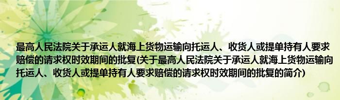 最高人民法院关于承运人就海上货物运输向托运人、收货人或提单持有人要求赔偿的请求权时效期间的批复(关于最高人民法院关于承运人就海上货物运输向托运人、收货人或提单持有人要求赔偿的请求权时效期间的批复的简介)