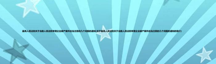 本文关于最高人民法院关于当前人民法院审理企业破产案件应当注意的几个问题的通知的简介就讲解完毕,希望对大家有所帮助。