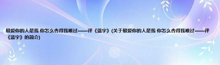 本文关于最爱你的人是我,你怎么舍得我难过——评《蓝宇》的简介就讲解完毕,希望对大家有所帮助。