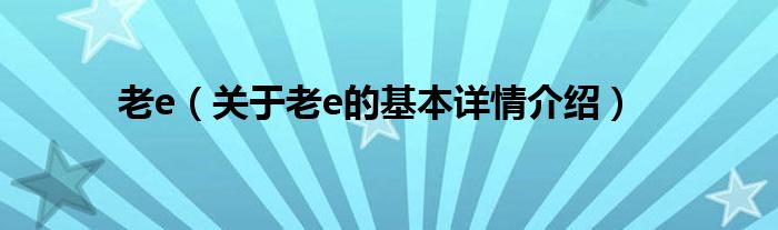 本文关于老e的基本详情介绍就讲解完毕,希望对大家有所帮助。