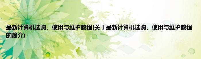 大家好,最新计算机选购、使用与维护教程,关于最新计算机选购、使用与维护教程的简介很多人还不知道,现在让我们一起来看看吧!