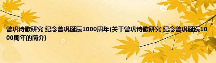 本文关于曾巩诗歌研究 纪念曾巩诞辰1000周年的简介就讲解完毕,希望对大家有所帮助。