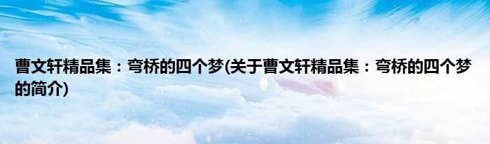 本文关于曹文轩精品集:弯桥的四个梦的简介就讲解完毕,希望对大家有所帮助。