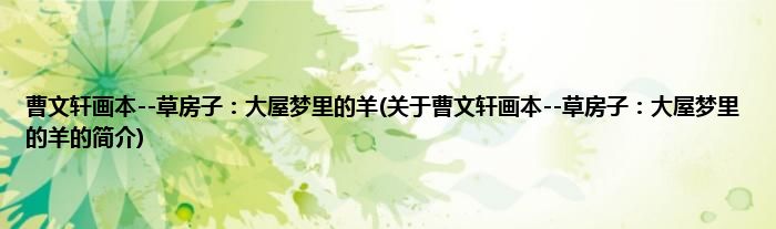 本文关于曹文轩画本--草房子:大屋梦里的羊的简介就讲解完毕,希望对大家有所帮助。