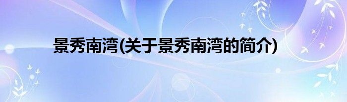 大家好,景秀南湾,关于景秀南湾的简介很多人还不知道,现在让我们一起来看看吧!