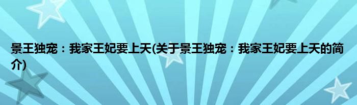 本文关于景王独宠:我家王妃要上天的简介就讲解完毕,希望对大家有所帮助。