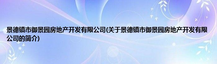 大家好,景德镇市御景园房地产开发有限公司,关于景德镇市御景园房地产开发有限公司的简介很多人还不知道,现在让我们一起来看看吧!