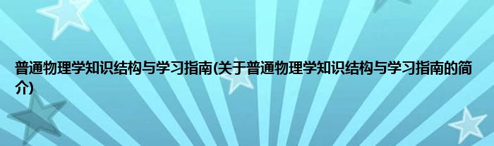 大家好,普通物理学知识结构与学习指南,关于普通物理学知识结构与学习指南的简介很多人还不知道,现在让我们一起来看看吧!
