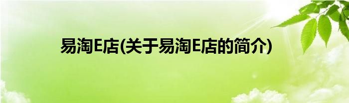 易淘E店(关于易淘E店的简介)