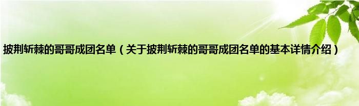 本文关于披荆斩棘的哥哥成团名单的基本详情介绍就讲解完毕,希望对大家有所帮助。