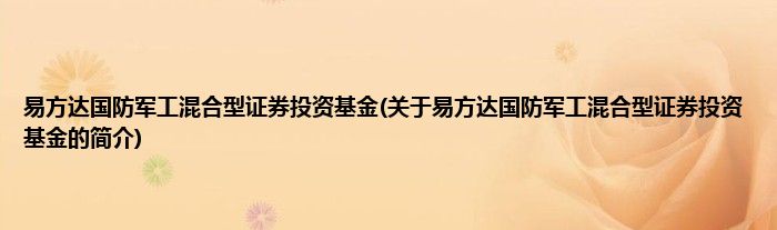 大家好,易方达国防军工混合型证券投资基金,关于易方达国防军工混合型证券投资基金的简介很多人还不知道,现在让我们一起来看看吧!