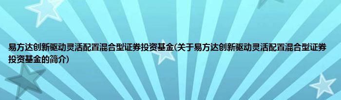 大家好,易方达创新驱动灵活配置混合型证券投资基金,关于易方达创新驱动灵活配置混合型证券投资基金的简介很多人还不知道,现在让我们一起来看看吧!