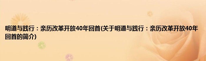 大家好,明道与践行:亲历改革开放40年回首,关于明道与践行:亲历改革开放40年回首的简介很多人还不知道,现在让我们一起来看看吧!