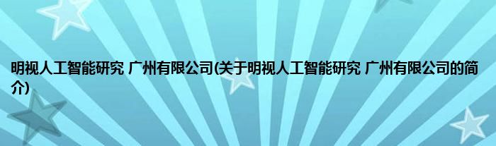 大家好,明视人工智能研究 广州有限公司,关于明视人工智能研究 广州有限公司的简介很多人还不知道,现在让我们一起来看看吧!