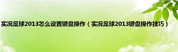 大家好,精选小编来为大家解答以上问题。实况足球2013怎么设置键盘操作,实况足球2013键盘操作技巧很多人还不知道,现在让我们一起来看看吧!