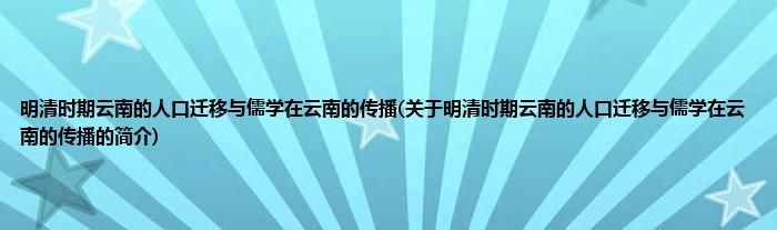 本文关于明清时期云南的人口迁移与儒学在云南的传播的简介就讲解完毕,希望对大家有所帮助。
