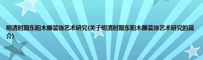 本文关于明清时期东阳木雕装饰艺术研究的简介就讲解完毕,希望对大家有所帮助。