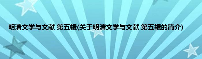 本文关于明清文学与文献 第五辑的简介就讲解完毕,希望对大家有所帮助。