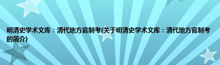 本文关于明清史学术文库:清代地方官制考的简介就讲解完毕,希望对大家有所帮助。