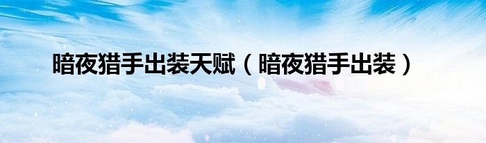 大家好,精选小编来为大家解答以上问题。暗夜猎手出装天赋,暗夜猎手出装很多人还不知道,现在让我们一起来看看吧!