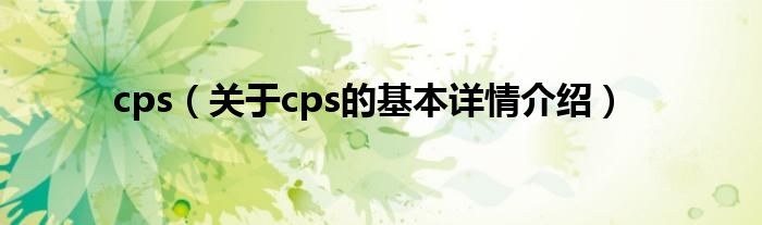 本文关于cps的基本详情介绍就讲解完毕,希望对大家有所帮助。