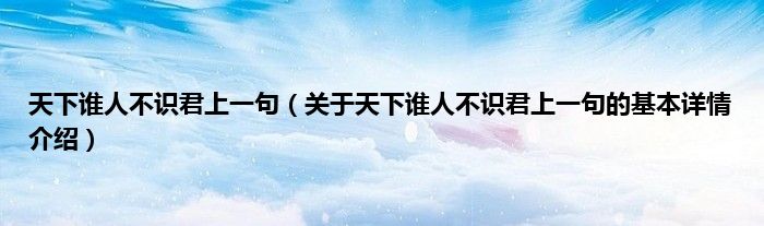本文关于天下谁人不识君上一句的基本详情介绍就讲解完毕,希望对大家有所帮助。