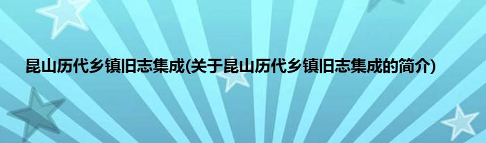 本文关于昆山历代乡镇旧志集成的简介就讲解完毕,希望对大家有所帮助。