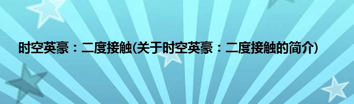 时空英豪:二度接触(关于时空英豪:二度接触的简介)