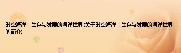 本文关于时空海洋:生存与发展的海洋世界的简介就讲解完毕,希望对大家有所帮助。