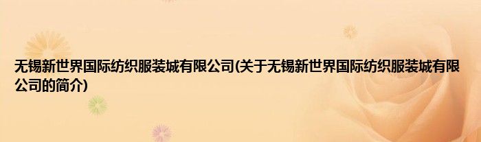 无锡新世界国际纺织服装城有限公司(关于无锡新世界国际纺织服装城有限公司的简介)