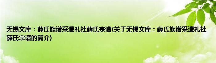 本文关于无锡文库:薛氏族谱采遗礼社薛氏宗谱的简介就讲解完毕,希望对大家有所帮助。