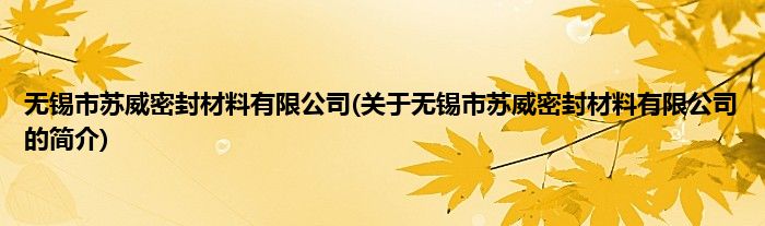 本文关于无锡市苏威密封材料有限公司的简介就讲解完毕,希望对大家有所帮助。