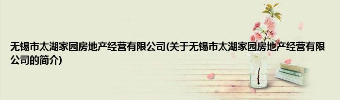 无锡市太湖家园房地产经营有限公司(关于无锡市太湖家园房地产经营有限公司的简介)
