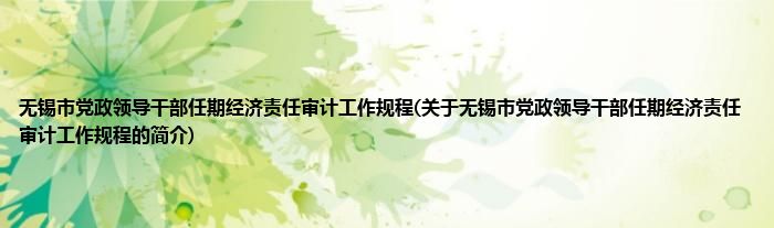 无锡市党政领导干部任期经济责任审计工作规程(关于无锡市党政领导干部任期经济责任审计工作规程的简介)