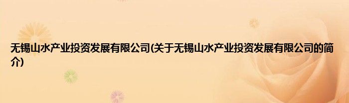 本文关于无锡山水产业投资发展有限公司的简介就讲解完毕,希望对大家有所帮助。