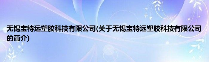 本文关于无锡宝特远塑胶科技有限公司的简介就讲解完毕,希望对大家有所帮助。