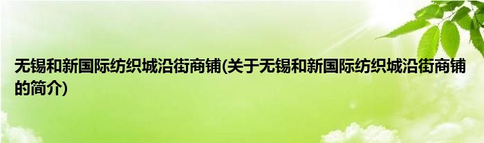 本文关于无锡和新国际纺织城沿街商铺的简介就讲解完毕,希望对大家有所帮助。