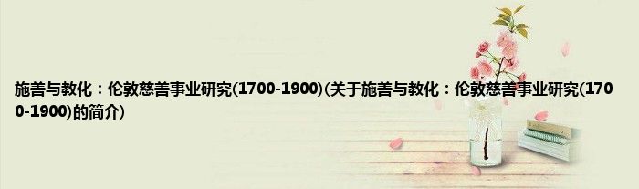 本文关于施善与教化:伦敦慈善事业研究(1700-1900)的简介就讲解完毕,希望对大家有所帮助。