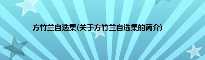 本文关于方竹兰自选集的简介就讲解完毕,希望对大家有所帮助。