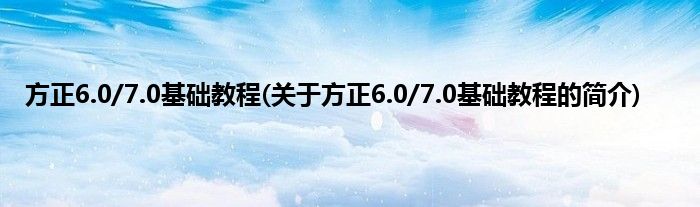 本文关于方正6.0/7.0基础教程的简介就讲解完毕,希望对大家有所帮助。