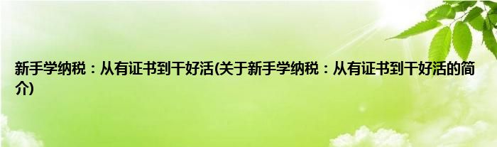 本文关于新手学纳税:从有证书到干好活的简介就讲解完毕,希望对大家有所帮助。