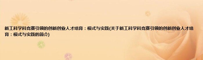 本文关于新工科学科竞赛引领的创新创业人才培育:模式与实践的简介就讲解完毕,希望对大家有所帮助。